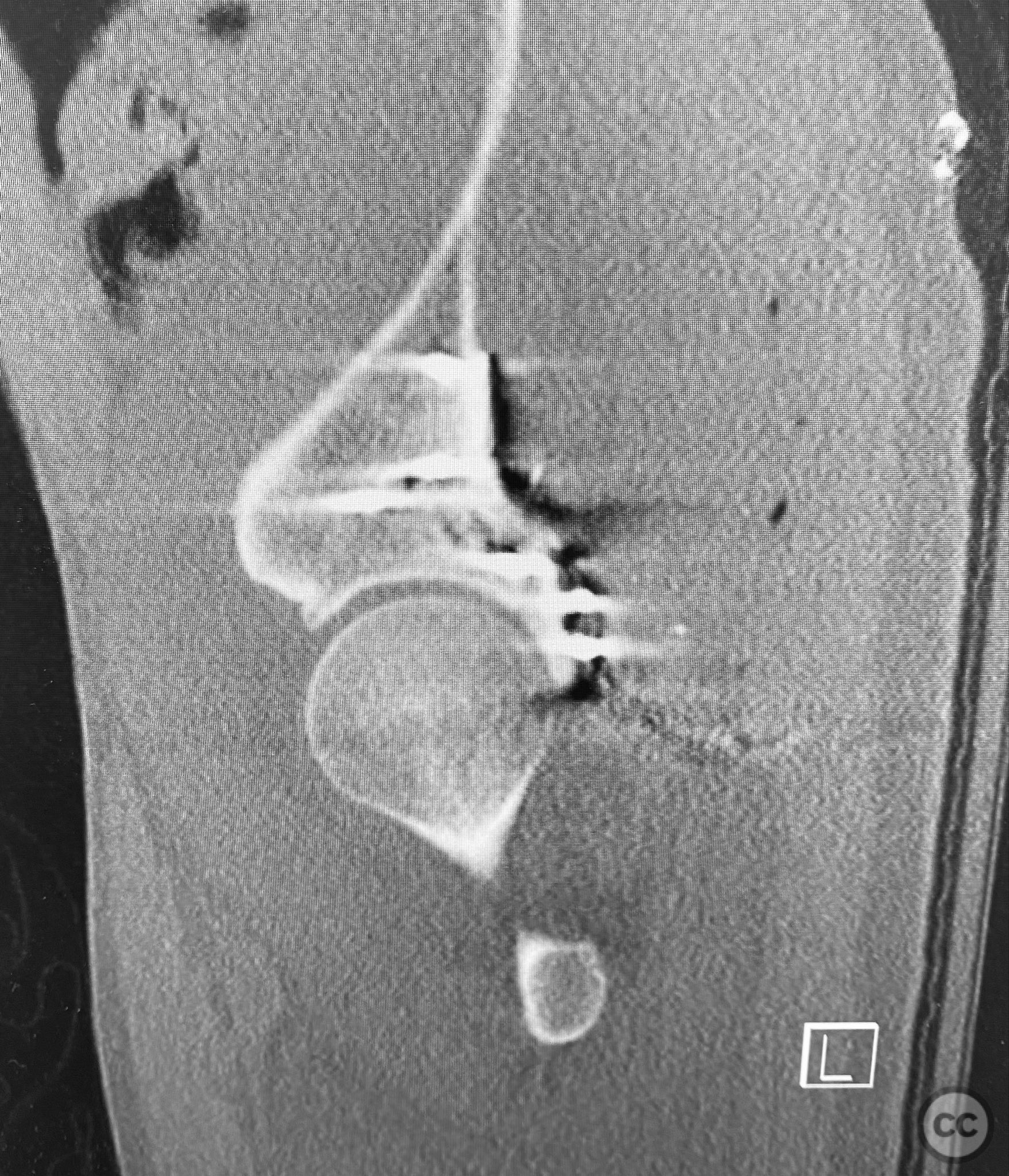 Anatomical surgical approach: A standard Kocher-Langenbeck approach was utilized. A longitudinal incision was made centered over the greater trochanter, extending proximally and distally as required. The fascia lata was incised in line with the skin incision, and the gluteus maximus was split in the direction of its fibers. The short external rotators (piriformis, obturator internus, gemelli) were identified and retracted or released as necessary to expose the posterior column and wall of the acetabulum. The sciatic nerve was identified and protected throughout. The impacted articular surface was elevated using dedicated elevators, and the defect was filled with autologous corticocancellous bone graft harvested from the greater trochanter. The cranial wall fragment was reduced anatomically and secured with a spring hook plate. The main posterior wall fragment was then reduced and stabilized with a contoured reconstruction plate.